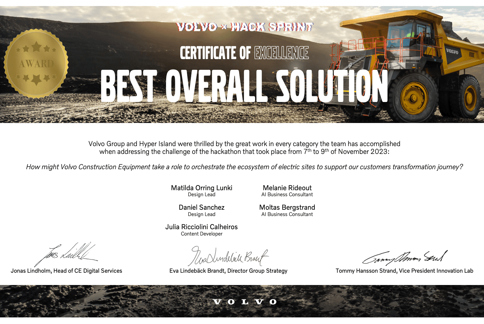 With the tight deadline of 72 hours, our team quickly compiled insights and outlined Volvo CE customers' wants, needs and pain points - as presented on the live brief from Volvo representatives.